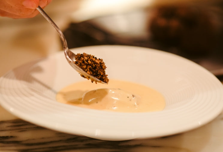 お客様の目の前でトリュフを擦るだけでは無く、トリュフの特長を活かした表現方法を考えメニューを構成しています。